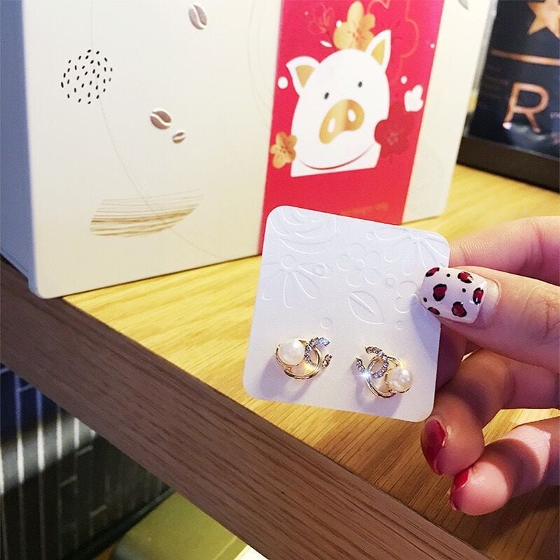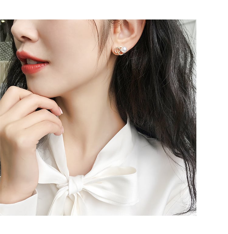 パール×パヴェのシンプルなワンポイントピアス。