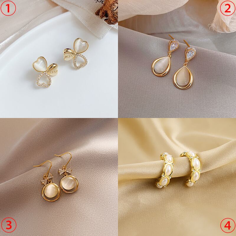 人気のキャッツアイシリーズピアス。それぞれのデザインで、カジュアルでもスーツ、ドレスでも合わせやすい上品なデザインです。