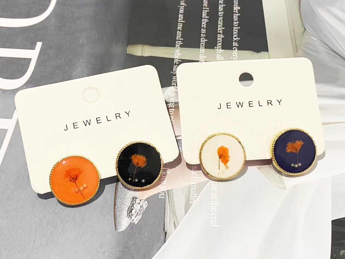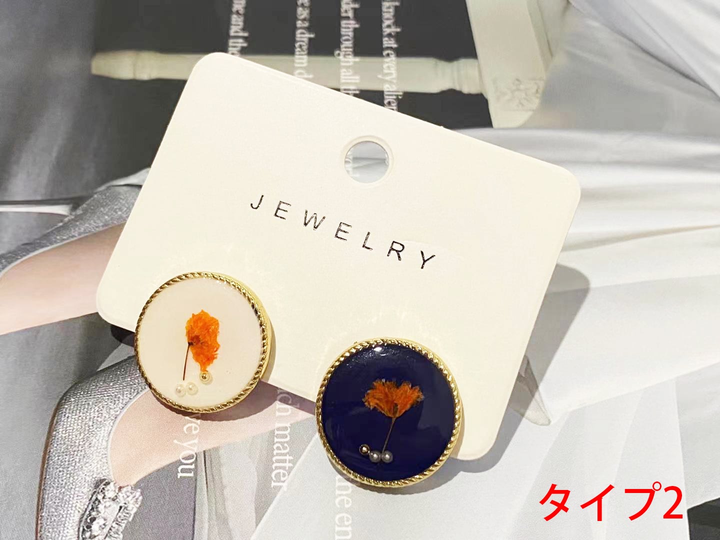 人気のドライフラワーとパール入りピアス。アシンメトリーのデザインでアレンジ自由自在。
