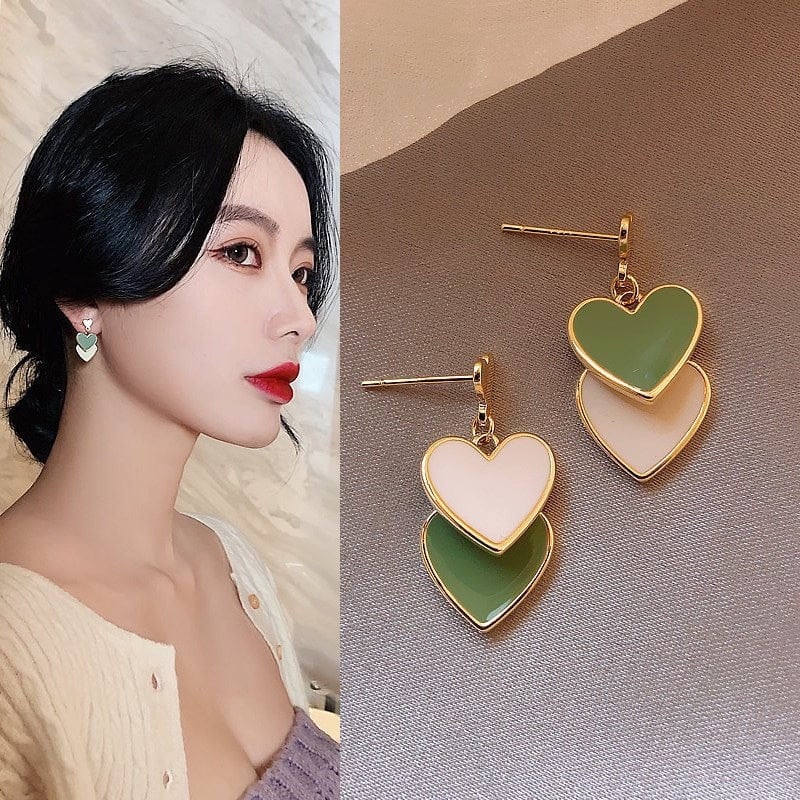 洗練されたデザイン人気の揺れるスタッドピアス。ダブルハートモチーフデザインで、どんなお洋服にも合います。カジュアルでもスーツ、ドレスでも合わせやすい上品なデザインです。