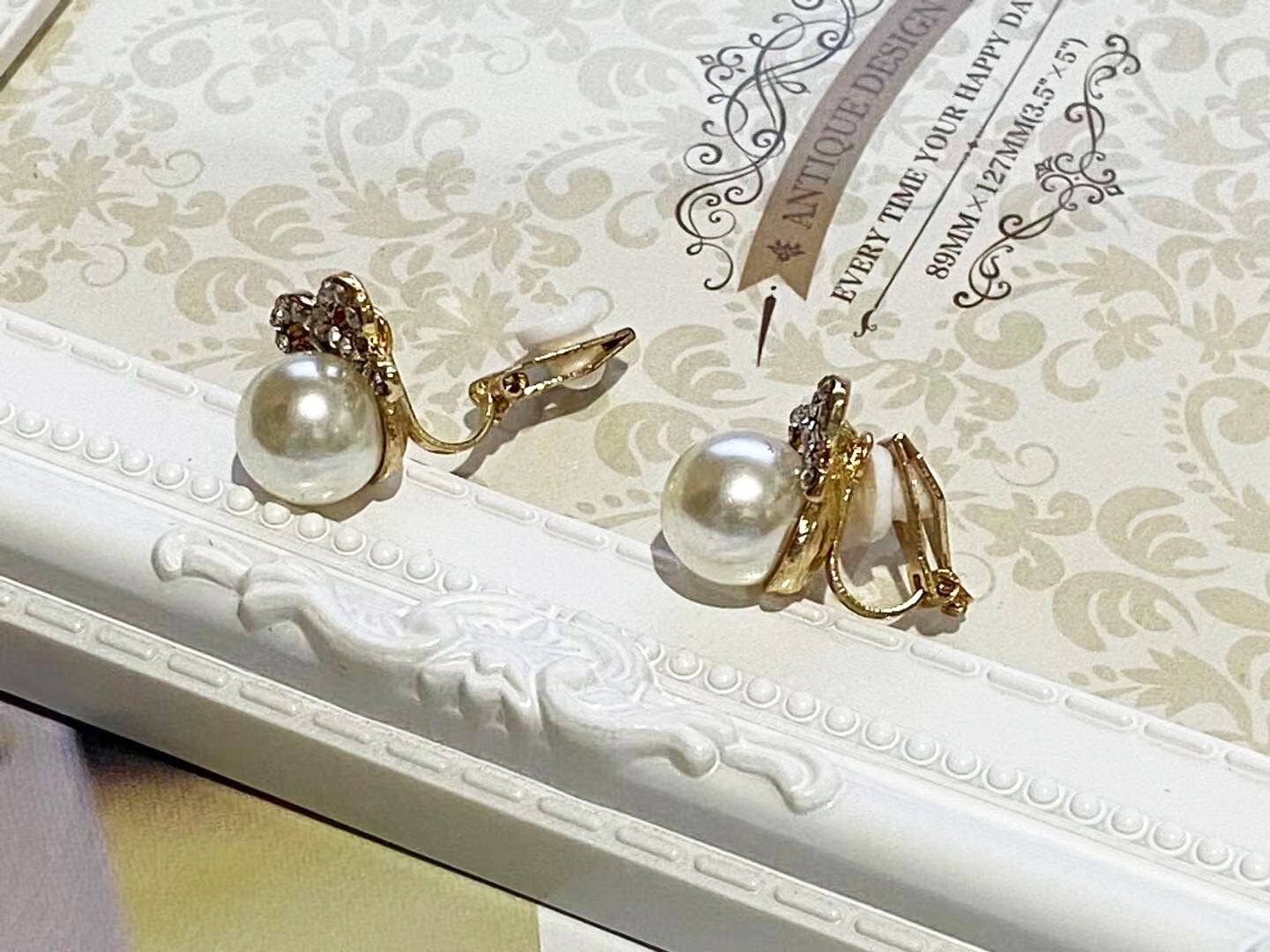 一粒パールとリボンのシンプルなデザインのクリップ式イヤリングです。