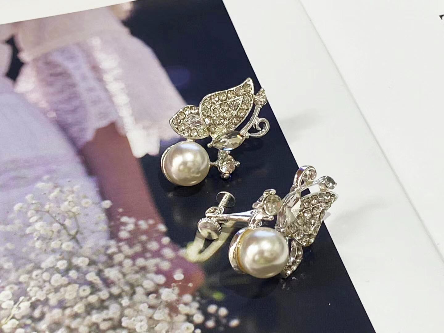 大きな蝶々デザインのイヤリングです。下部分に大粒のパールで