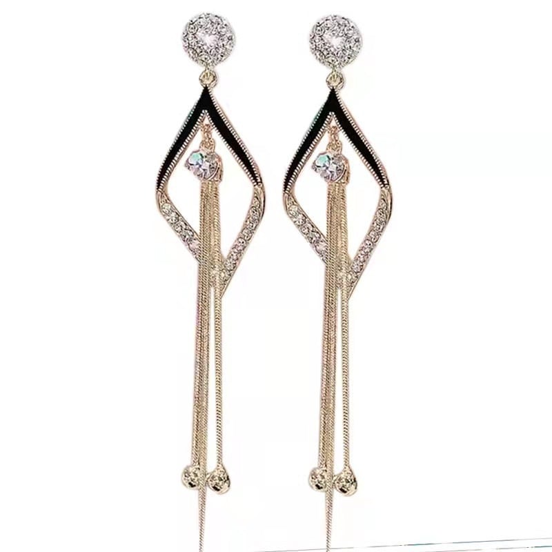 ゴールドロングピアスです!耳元でさり気なく揺れるピアスは、菱形モチーフデザインで女性らしく華奢な雰囲気を演出してくれるアイテムです。