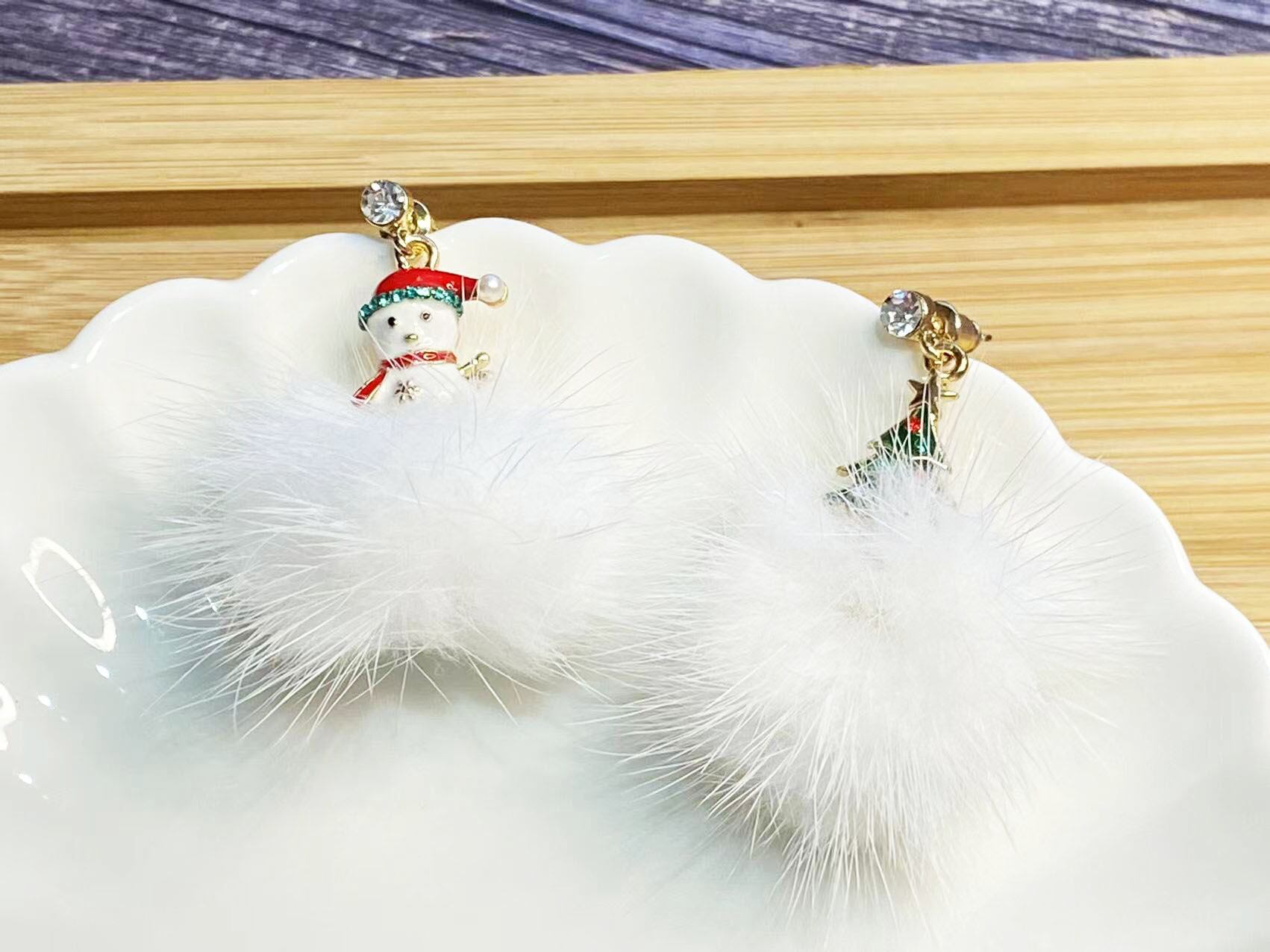 人気のファーデザイン、クリスマスシリーズピアスです。アシンメトリーでカジュアルでもスーツ、ドレスでも合わせやすい上品なデザインです。